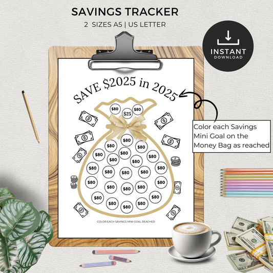 Printable Savings Tracker, Save 2025 in 2025, Financial Goals, Template, Saving Challenge Bundle, Organizer, Envelope, Goal, Money, Budget