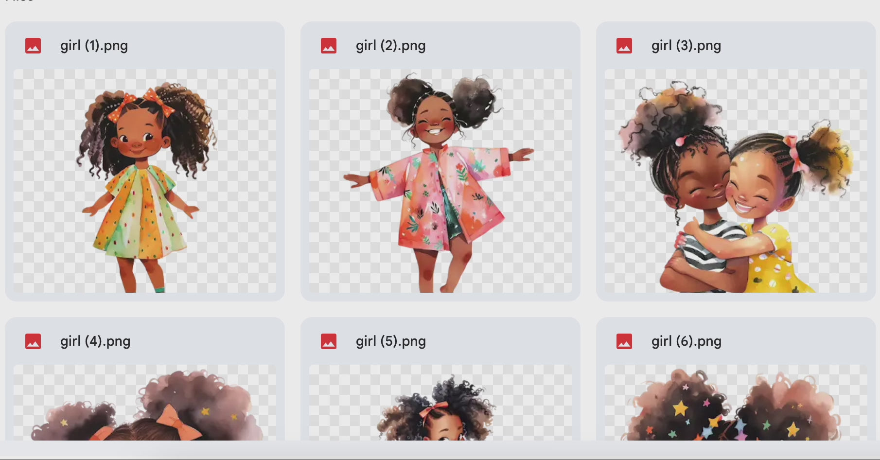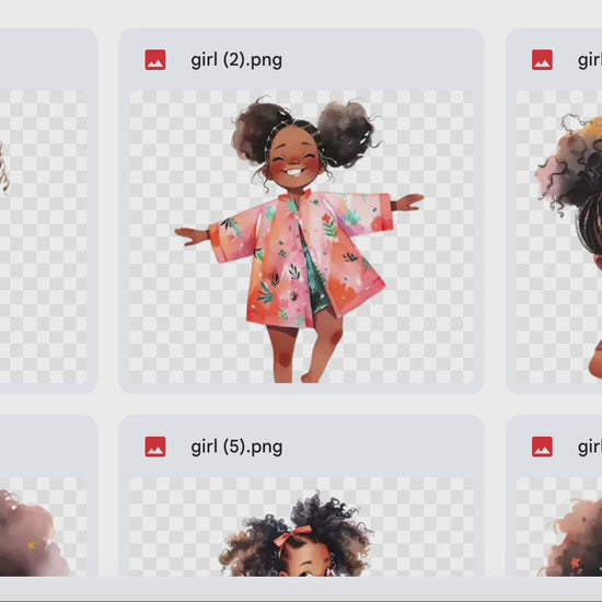 You receive the pack of π 40 pre-cropped Black Girl high-resolution png digital stickers which you can download to your device.