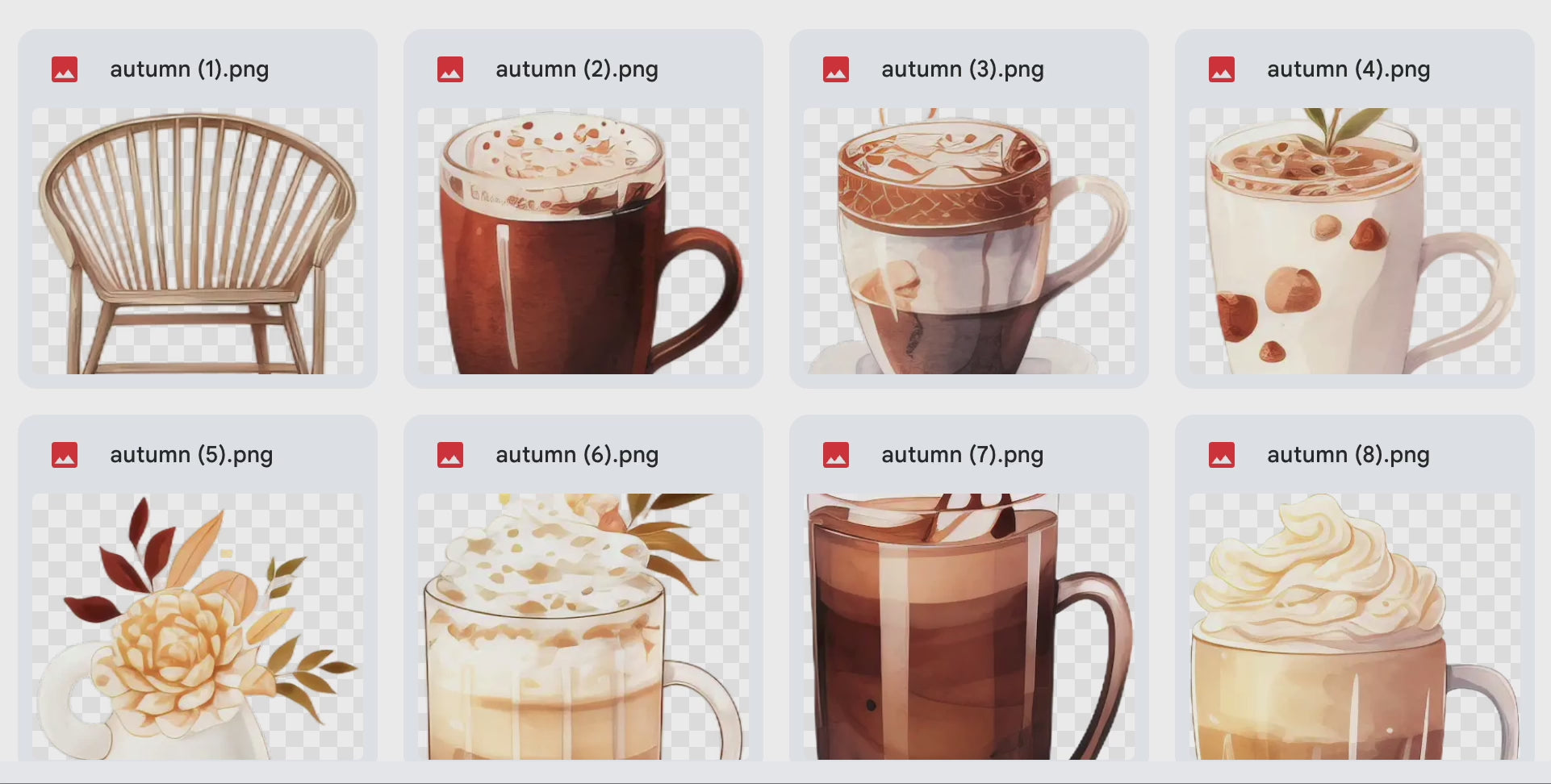 You will receive the Four Seasons collection of 125 pre-cropped png digital stickers which you can download to your device.