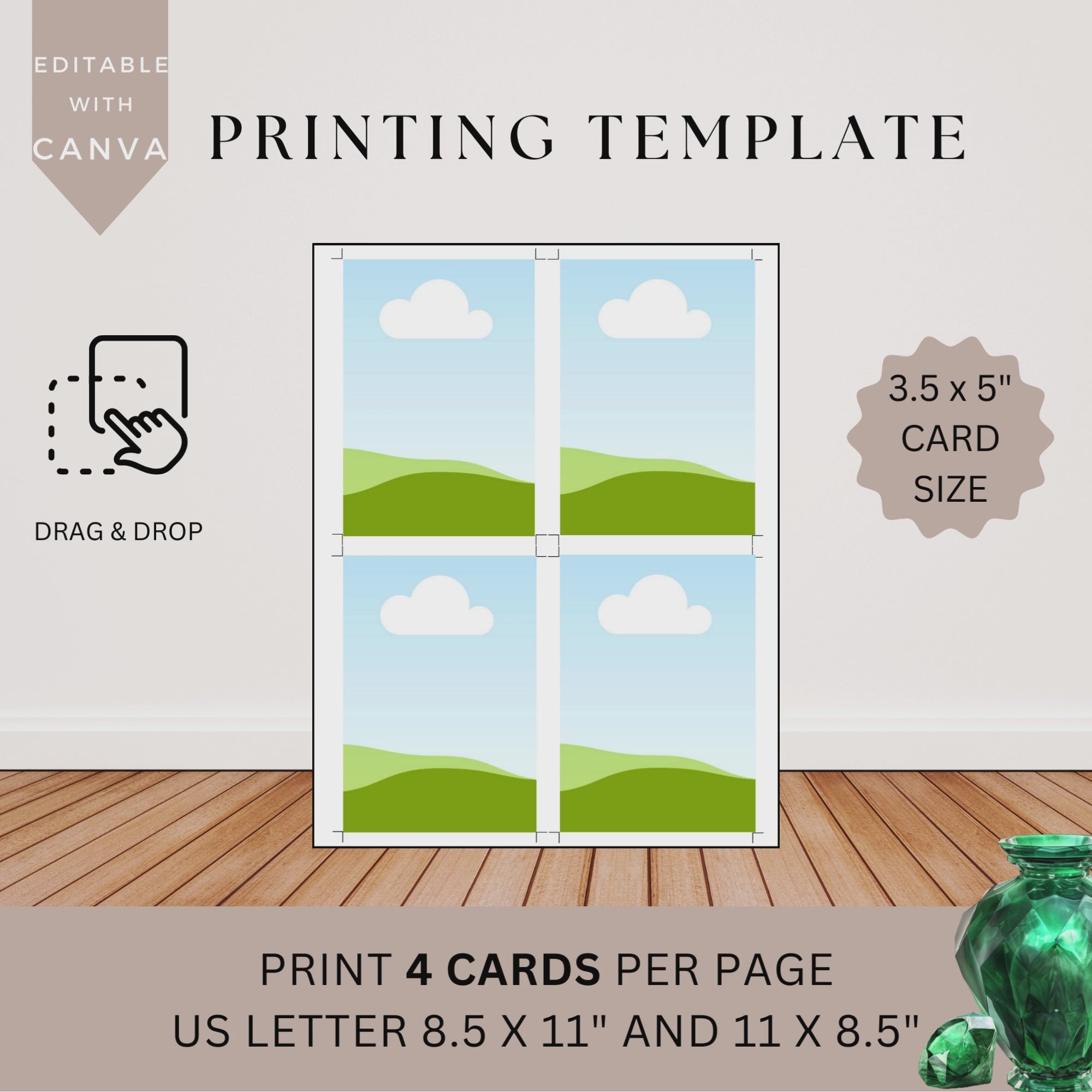 1 PDF that contains the links to our Canva Template PT10L2 3.5 x 5 inch Cards containing 2 Templates, Letter Size 8.5 x 11in and 11 x 8.5". Each template supports a total of 4 (3.5x5in) designs per page.